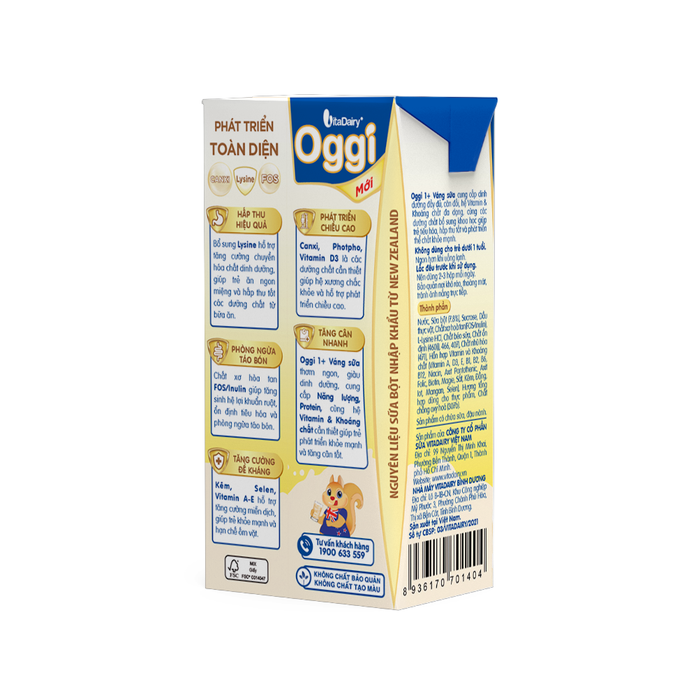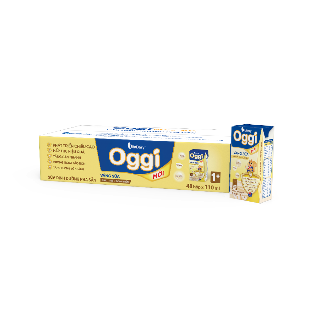 Sữa Bột Pha Sẵn. Oggi Gold là sản phẩm dùng để thay thế bữa ăn phụ, bổ sung dinh dưỡng, Vitamin và Khoáng chất thiết yếu giúp trẻ Suy dinh dưỡng, thấp còi và trẻ biếng ăn phát triển cân nặng, chiều cao và tăng cường sức khỏe tổng thể. Sản phẩm có nguyên liệu sữa bột được nhập khẩu từ New Zealand.