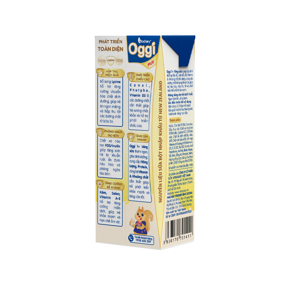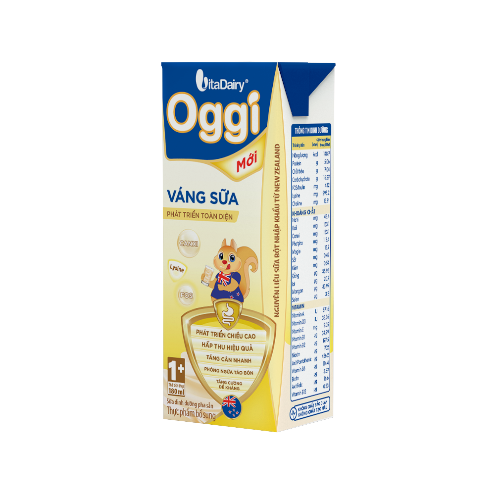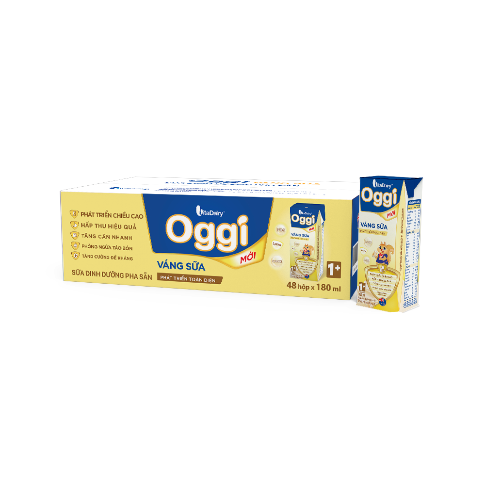 Sữa Bột Pha Sẵn. Oggi Gold là sản phẩm dùng để thay thế bữa ăn phụ, bổ sung dinh dưỡng, Vitamin và Khoáng chất thiết yếu giúp trẻ Suy dinh dưỡng, thấp còi và trẻ biếng ăn phát triển cân nặng, chiều cao và tăng cường sức khỏe tổng thể. Sản phẩm có nguyên liệu sữa bột được nhập khẩu từ New Zealand.