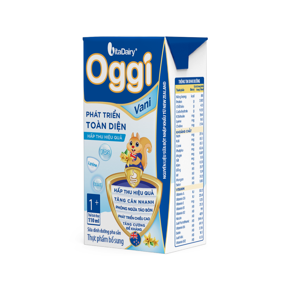 Sữa Bột Pha Sẵn. Oggi Gold là sản phẩm dùng để thay thế bữa ăn phụ, bổ sung dinh dưỡng, Vitamin và Khoáng chất thiết yếu giúp trẻ Suy dinh dưỡng, thấp còi và trẻ biếng ăn phát triển cân nặng, chiều cao và tăng cường sức khỏe tổng thể. Sản phẩm có nguyên liệu sữa bột được nhập khẩu từ New Zealand.